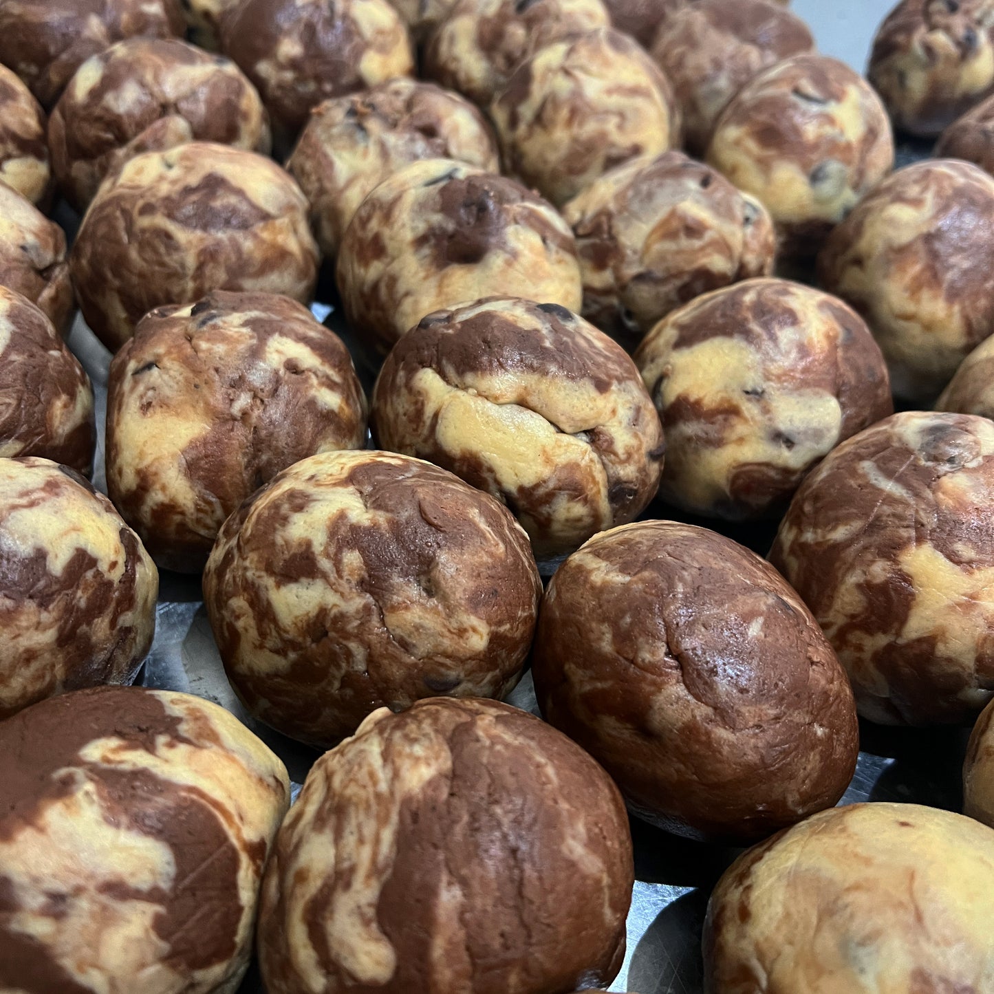 Classic and chocolate dough swirled and mixed with dark chocolate chips.